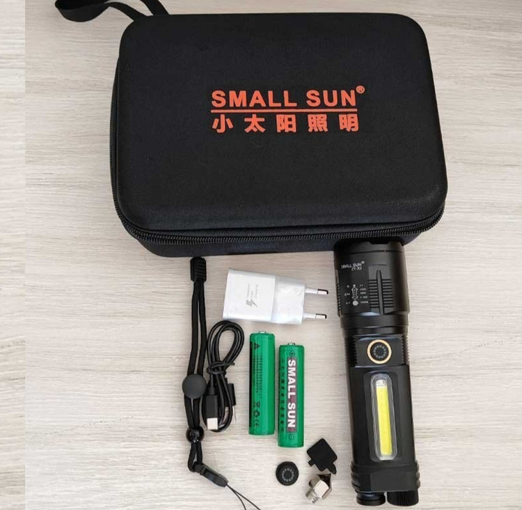 چراغ قوه پر قدرت اسمال سان t209 برد نور تا یک کیلومتر دارای تنظیم کانون زوم نور دارای پوشش ضد آب و ضد آلودگی 2500 لومن دارای شارژر تایپ c و کیف سه عدد باتری در بسته بندی آلیاژ آلومینیوم کیفیت عالی قابلیت از سایت abzarzomorod.ir تماس:09191612858___09385251350 ارسال به تمام نقاط با پست پیشتاز و تیپاکس